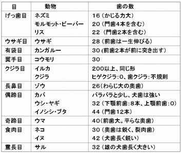 それ以外でも、ネズミの16本から、イノシシ・ブタの44本まで様々で、ほ 乳類の歯の数の基本は44本という原則とは全く無縁のデーターが出ています。